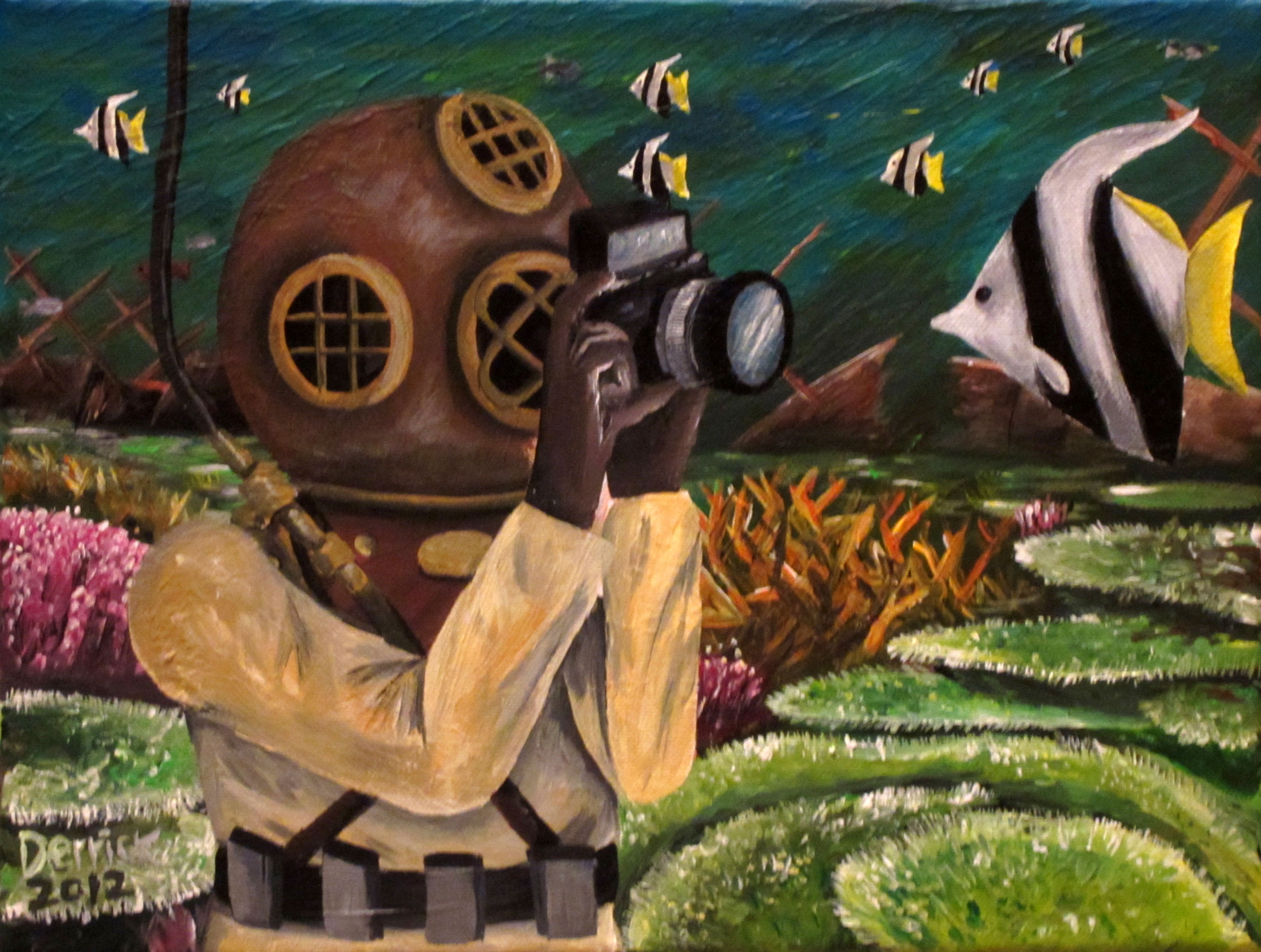 Photographer. Acrylic on canvas, 16″ x 20″. Another small one; sorry can’t remember the size!