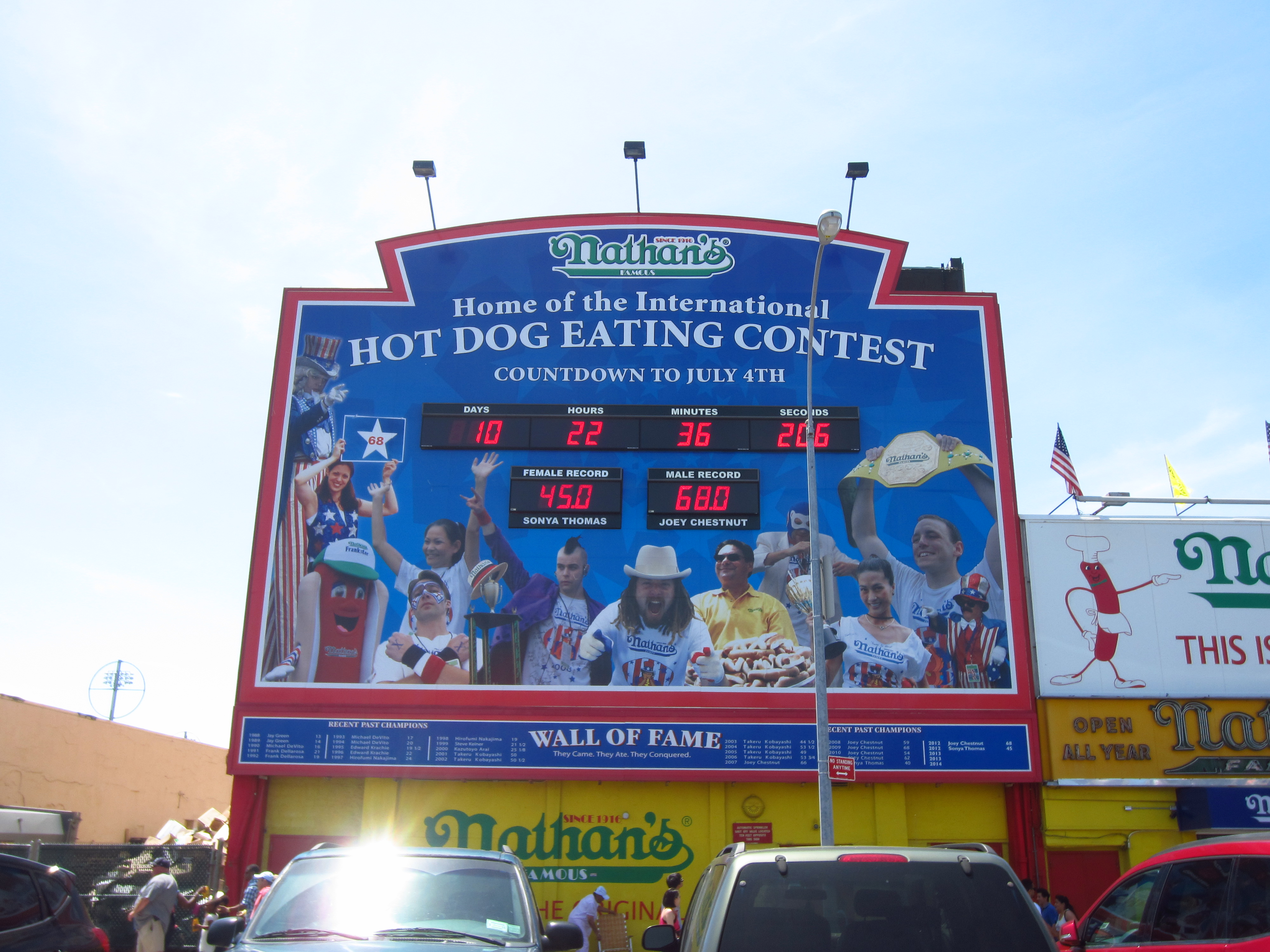 Coney Island is the home of the annual hot dog eating contest. I discovered the scoreboard for this weird event as we wandered past, honouring some past champions, and with a countdown until the next event on July the 4th.