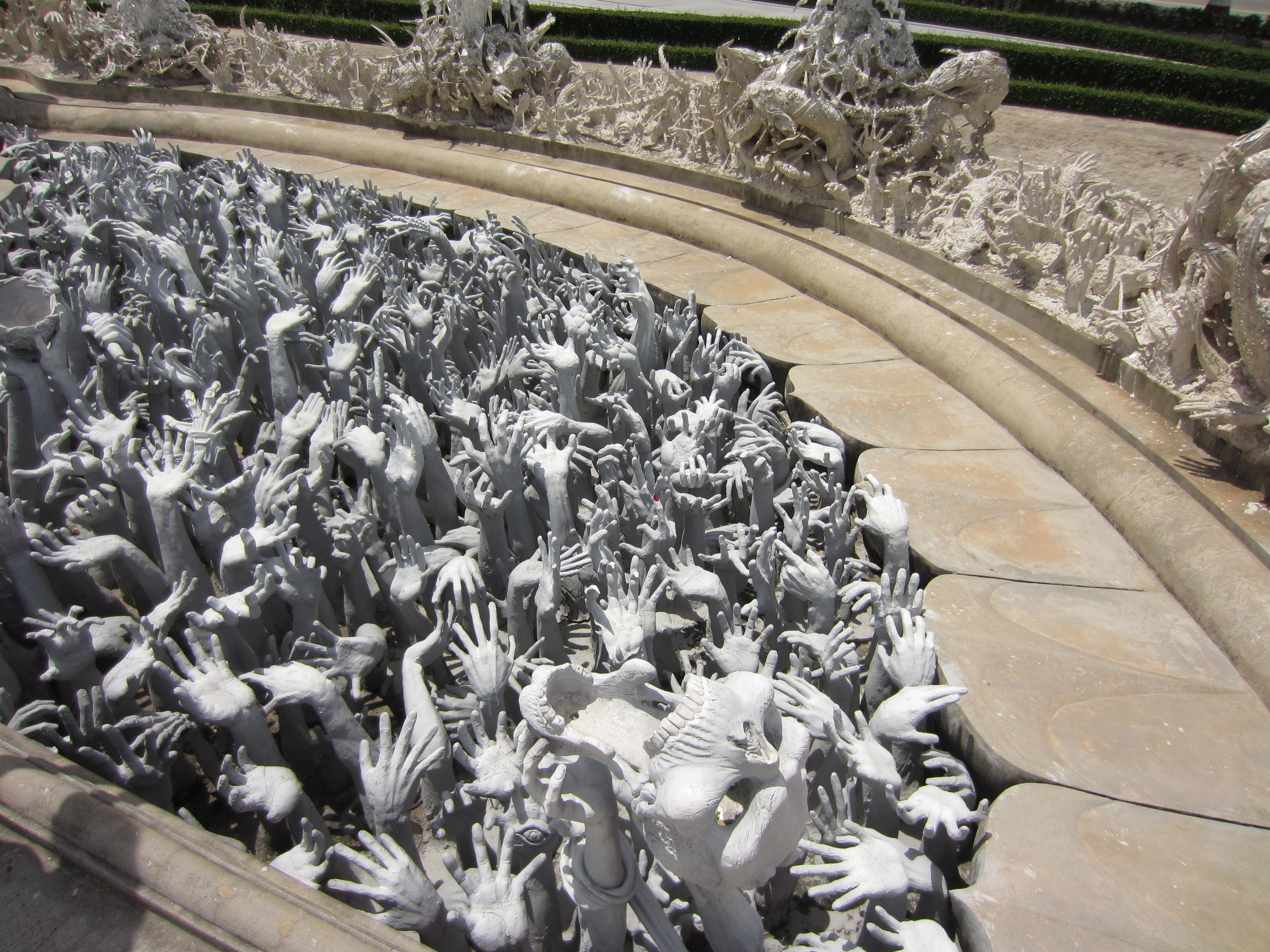 It was eye-catching, sure, but what was a little weird was the other stuff; a sea of human hand sculptures, raised and grasping like something from the ancient Greek underworld.