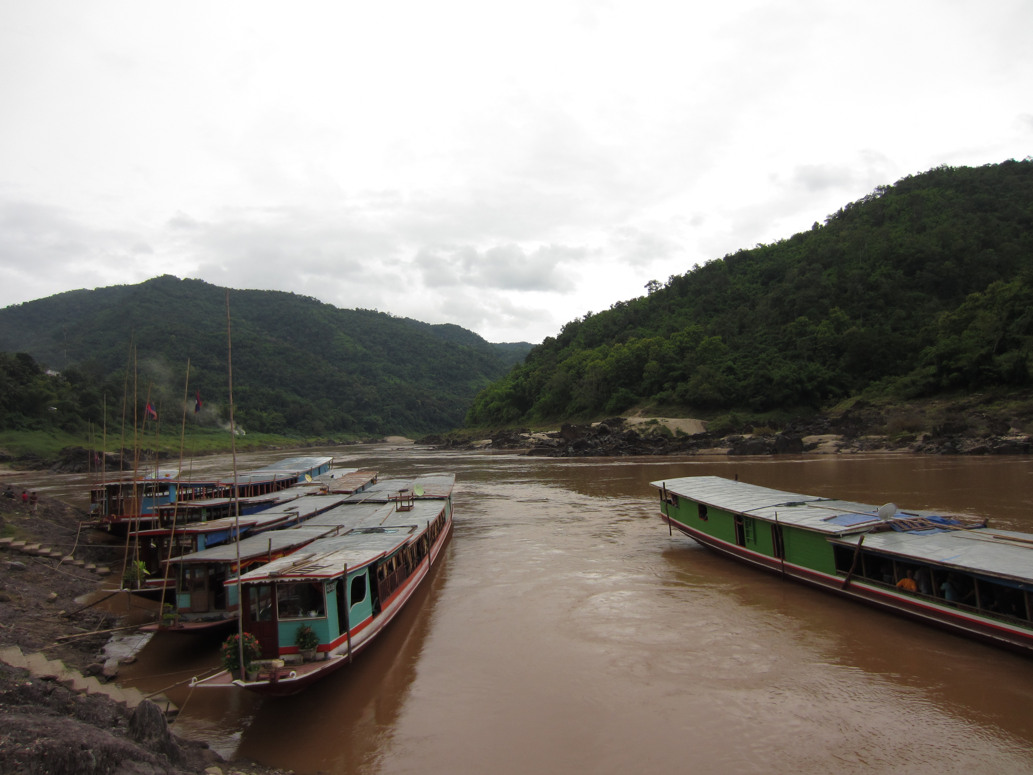The first vehicle of the day was a van that dropped us off at the riverfront. From there, small groups of us caught a little runaround boat that took us to the Laos side of the river to the town of Huay Xai. The border crossing was done within minutes.