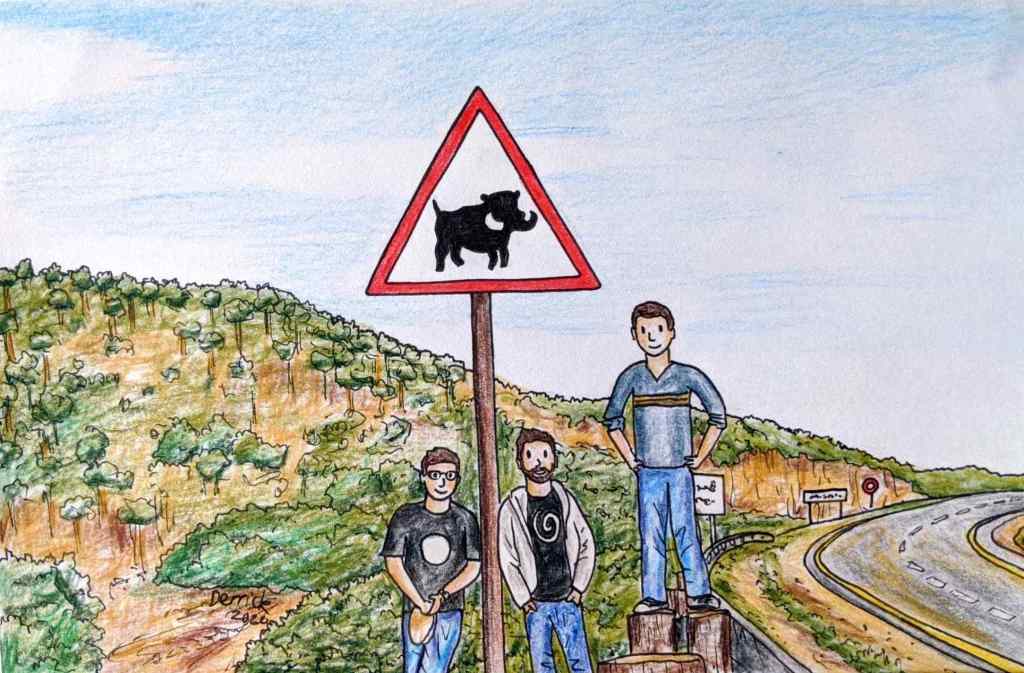 Along the south coast of South Africa, we came across this enormous road sign warning drivers of possible warthogs in the area. I like the creative choice to whiten out the tusk, a nice little design touch. The sign was so large, because this was a major highway, and trucks and cars were roaring past. Lucky for us, we had a chance to pull over safely and pose with this sign.