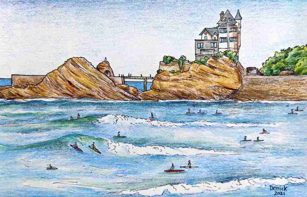 Biarritz, on the southern Atlantic coast, is a seaside resort city renowned for its elegant beach front and surfing spots. The centrepiece of the city is its beach, La Grande Plage, where some of Biarritz’ most spectacular buildings and sights can be found. Numerous rock formations stretch out into the sea, most notably La Rocher de la Vierge, a prominent rock accessible by a footbridge. Built on the beach front are several notable architectural masterpieces, such as Le Phare de Biarritz (Biarritz lighthouse), Biarritz Aquarium, l’Église Saint-Eugénie (a magnificent neo-Gothic church), and the Hôtel du Palais, originally built for the Empress Eugenie in 1855, and is a functioning hotel today.