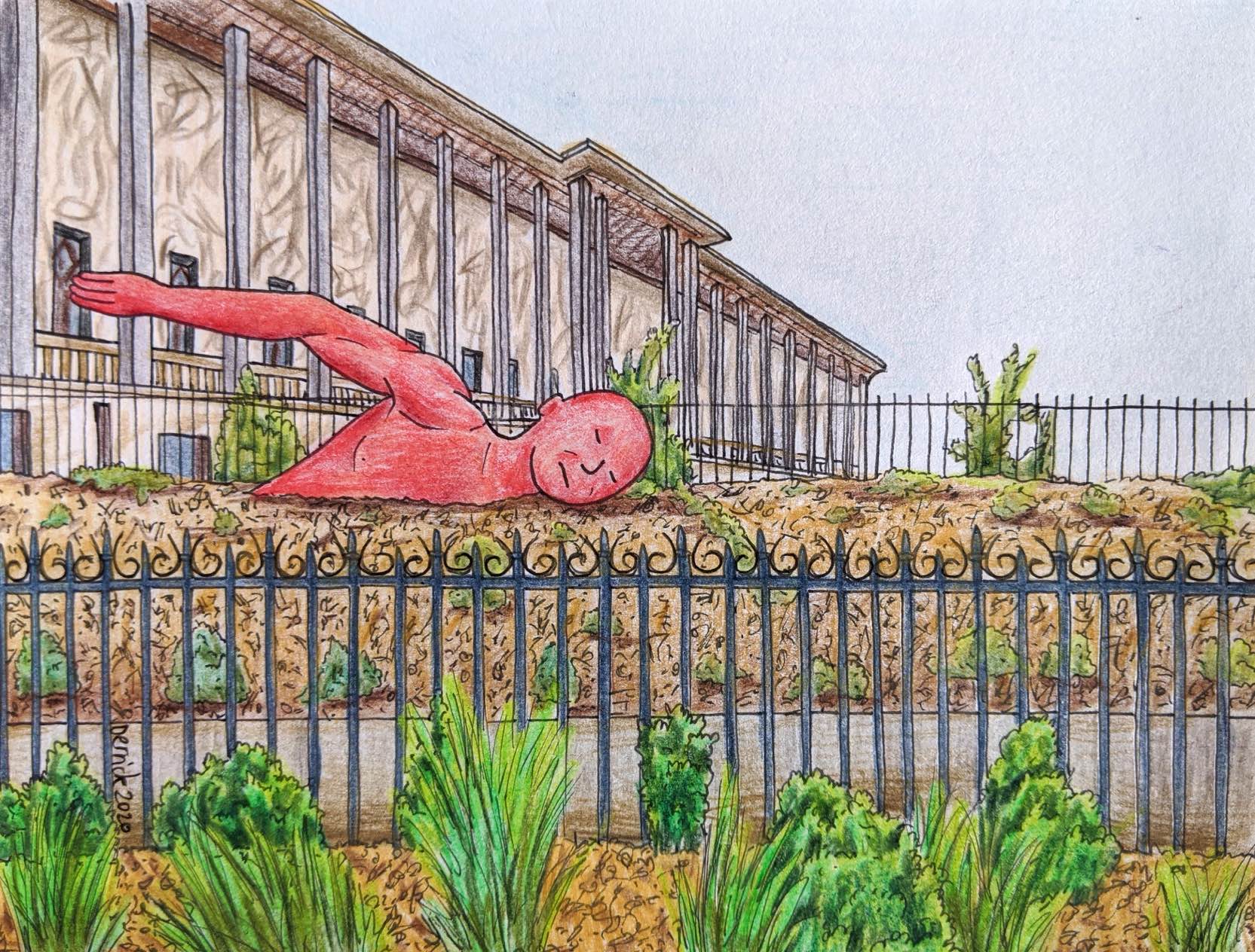 This red statue decorated the garden of the Porte Dorée aquarium.