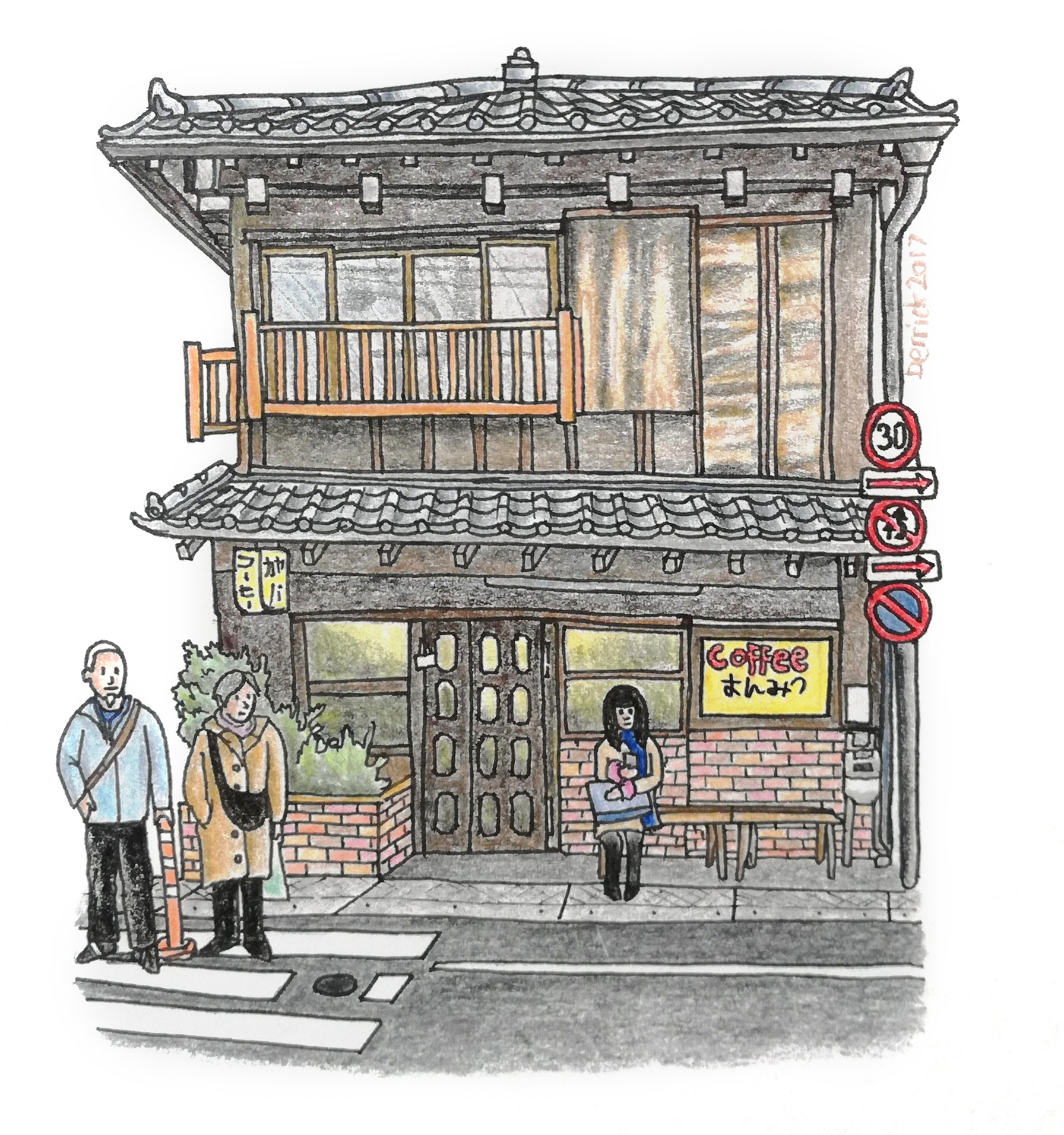 The famous Japanese vending machines are ubiquitous in Japan, with 5 million machines across and country (and counting)! That’s one machine for every 23 people. What’s inside ranges from noodles, food, umbrellas, beer, ice cream – you name it! I drew these machines in a quiet backstreet near our Airbnb.