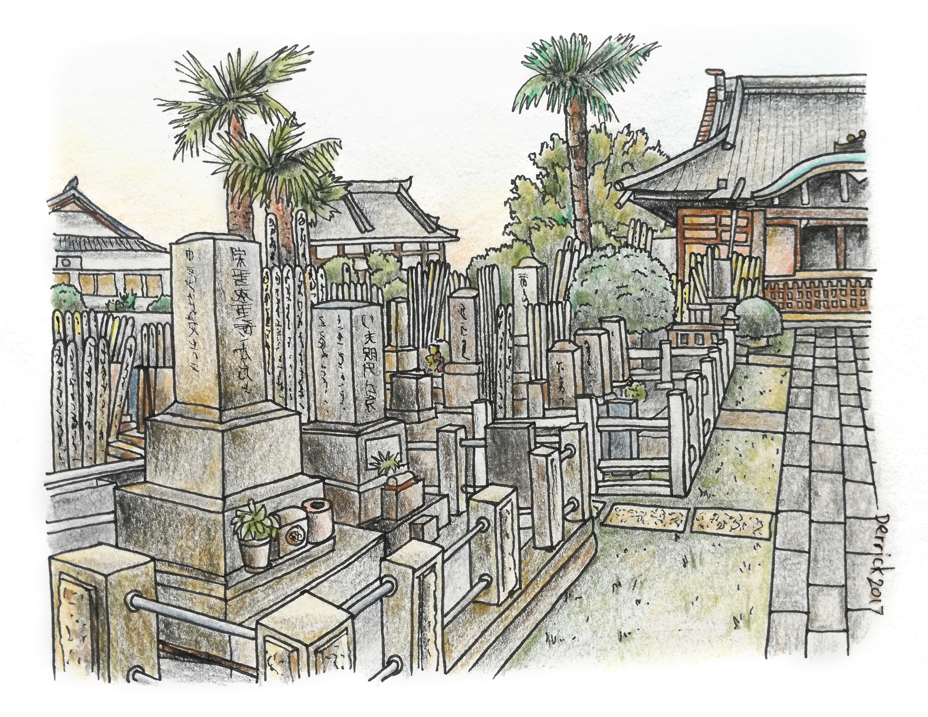Near Ueno Park, I discovered these Japanese cemeteries in an old part of Tokyo. There were a lot of them all in a row, and each had tombstones alongside tall wooden paddles called Itatoba. This was a very humbling and serene place to visit.