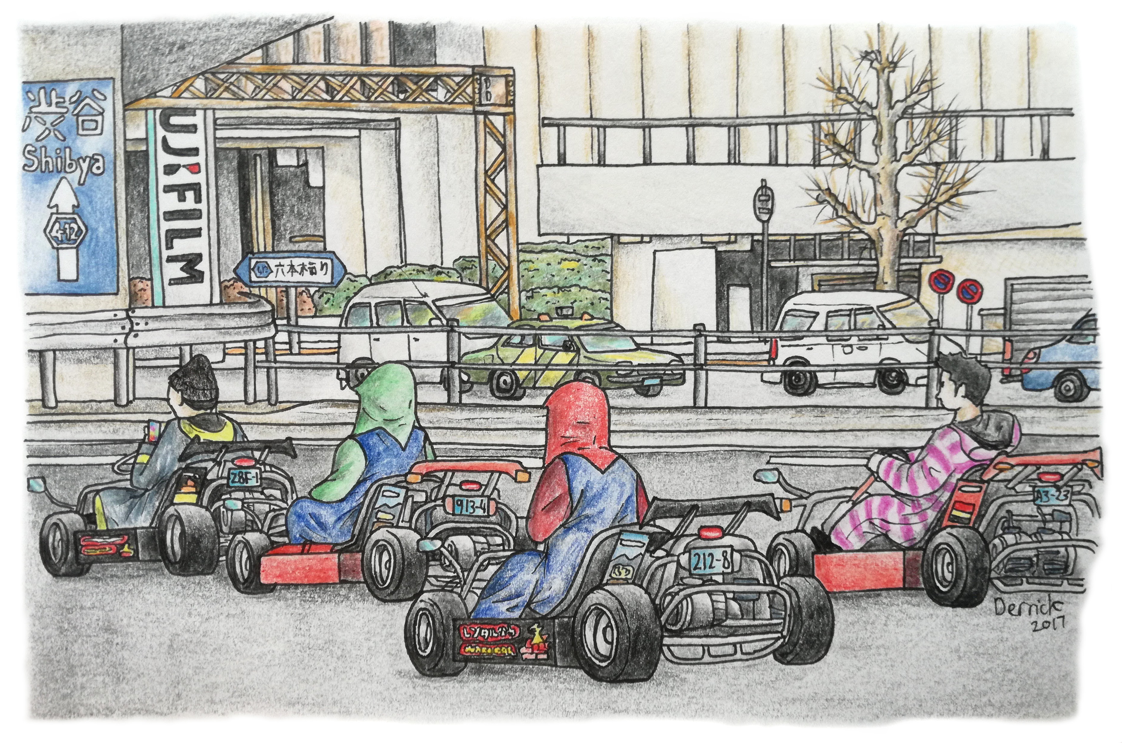 At some point during my wanders through the streets of Tokyo, a fleet of Mario Karts rolled to a stop at a traffic light, complete with costumes of Nintendo characters and other cartoons. It was part of Street Kart, a cool activity where people can hire karts for the road!