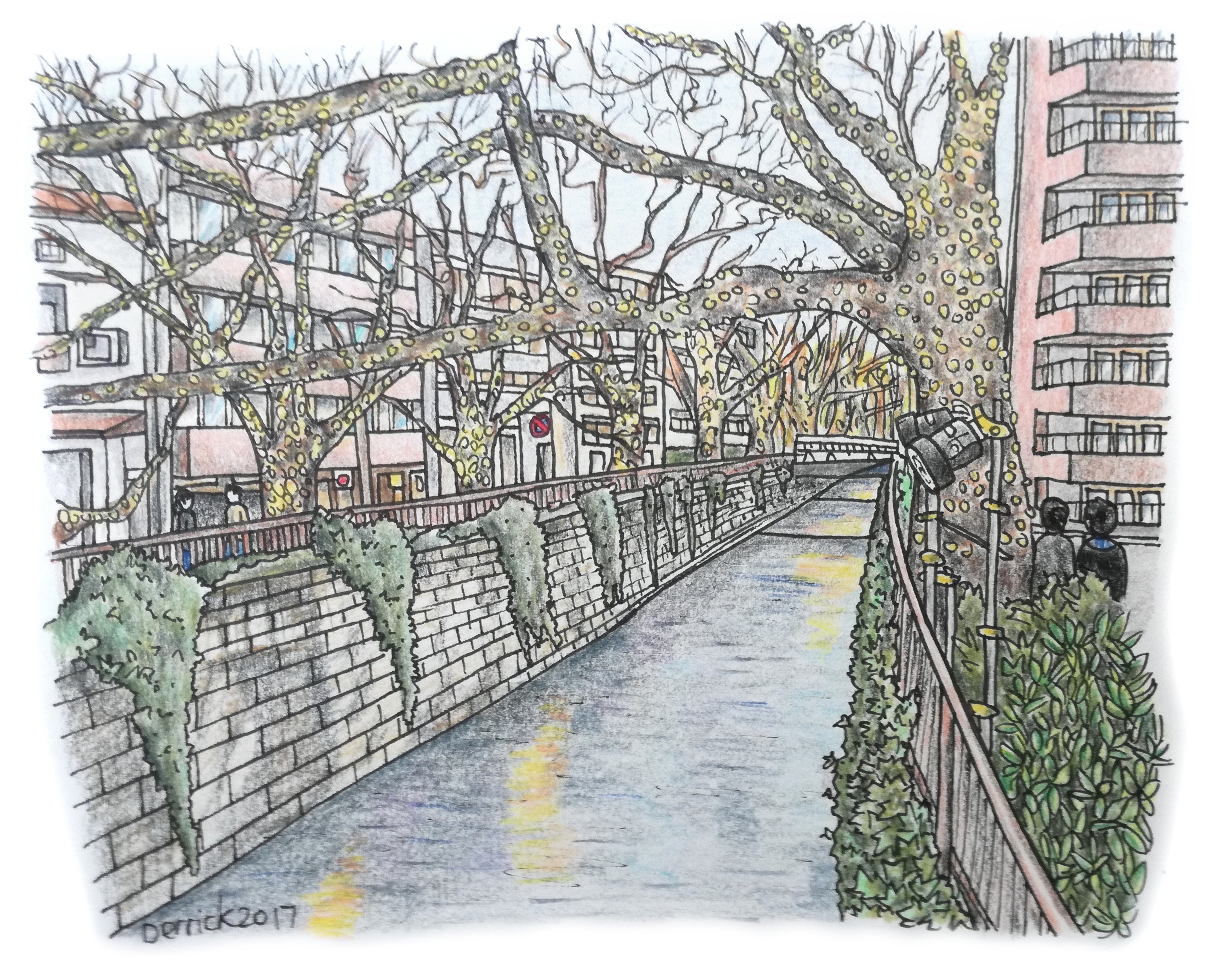 In the suburb of Nakameguro, I came across a light display being set up. It was called the Jewel Dome, where the trees that are over the canals are illuminated with thousands of beautiful lights.